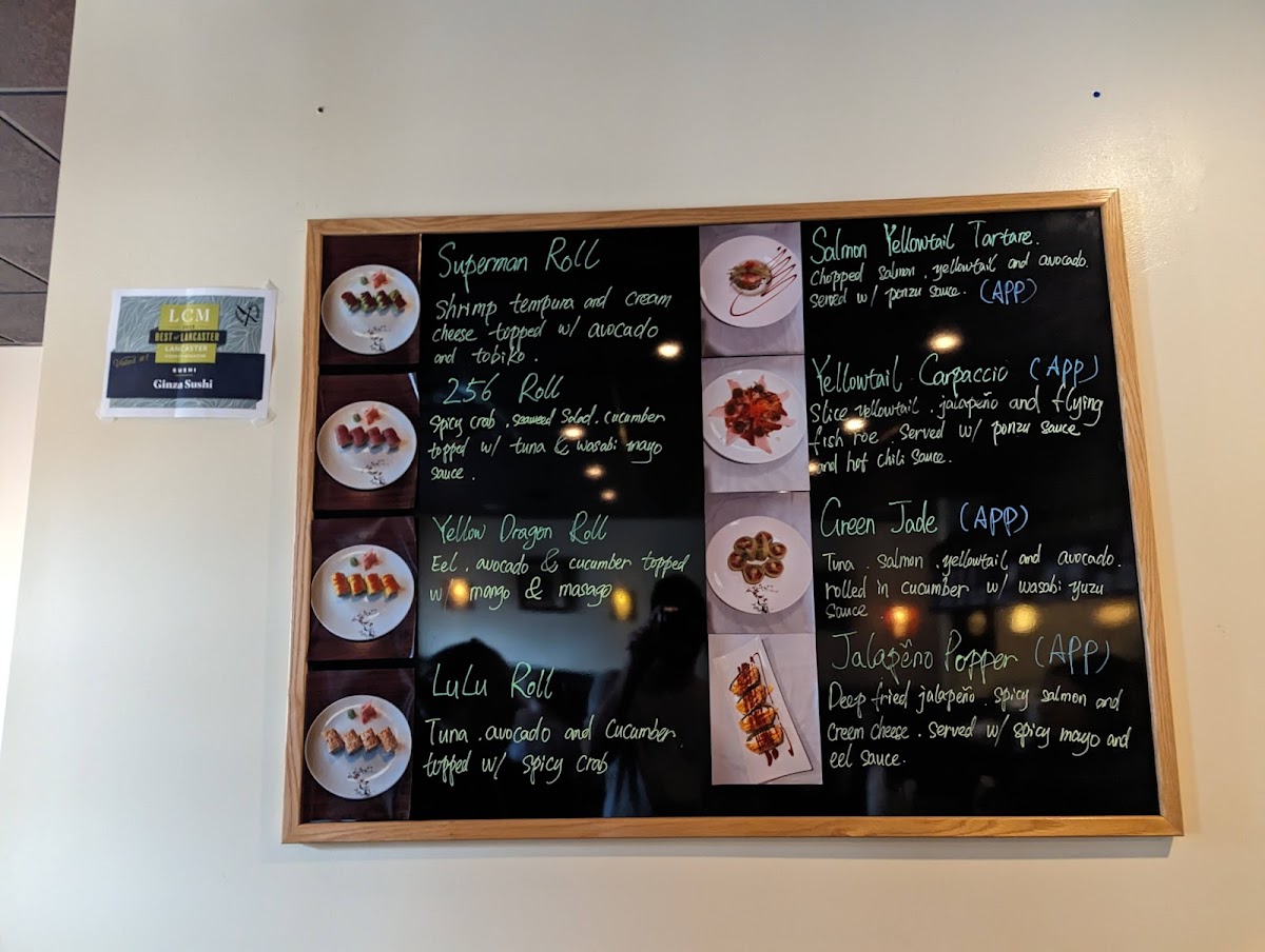 Salmon, cream cheese, mango, topped w/ yellowtail.